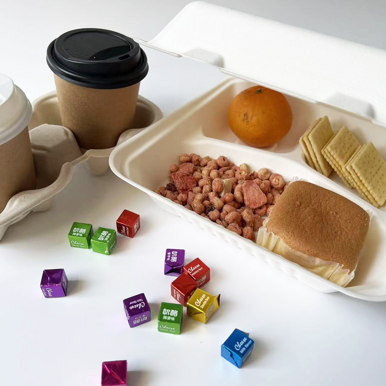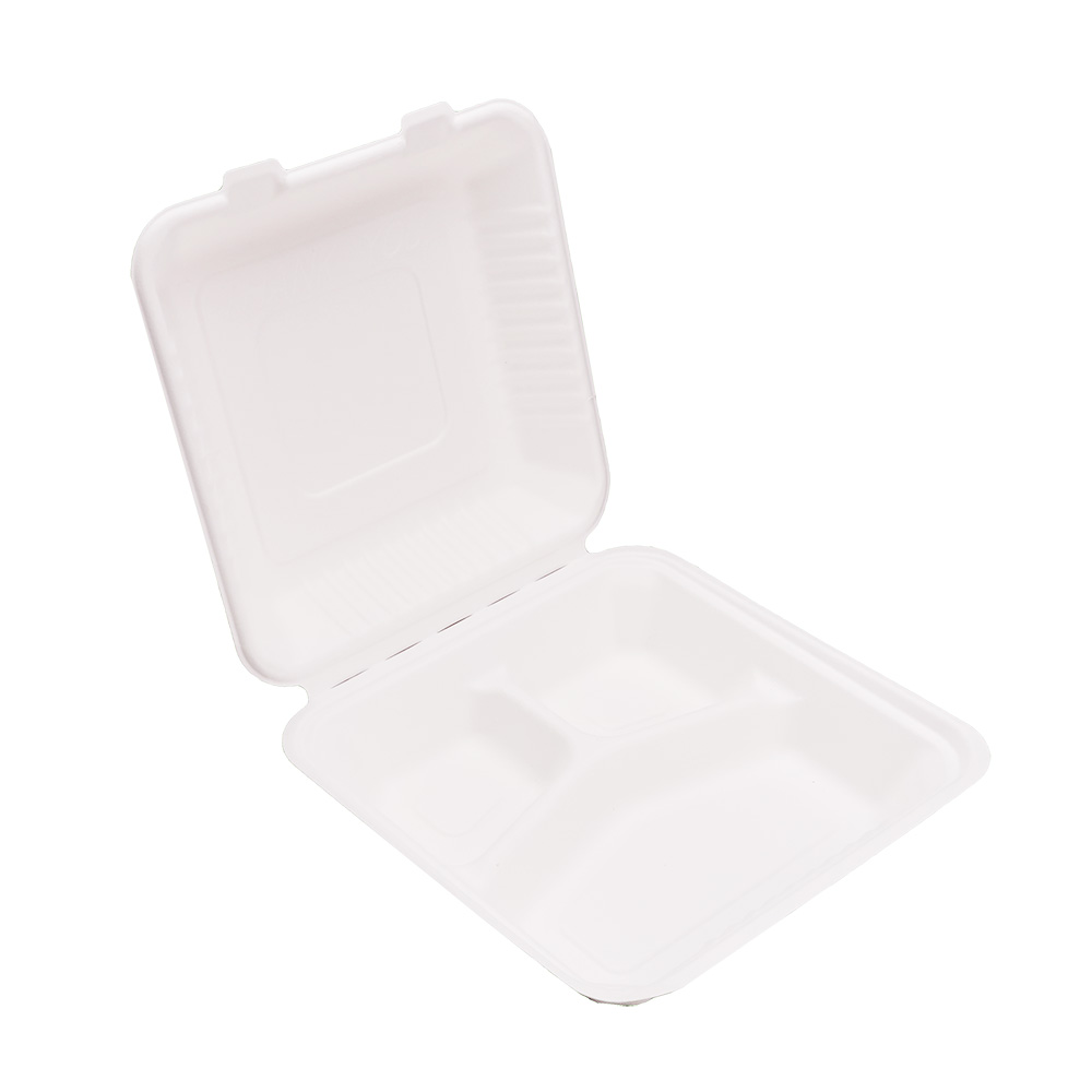 EcoFlavour Bagasse 3 Compartments Clamsell Box 9″ x 9″ – Pack of 100