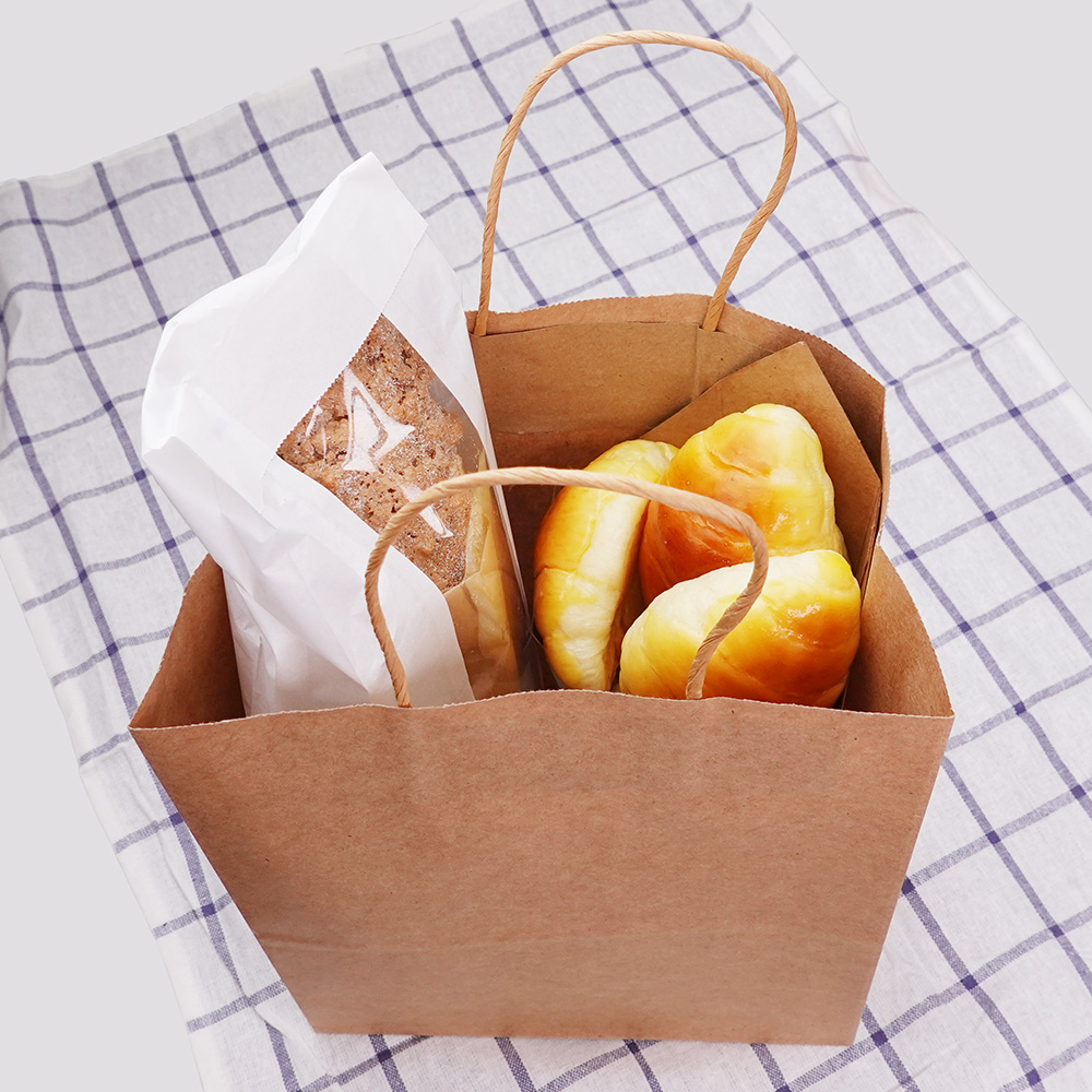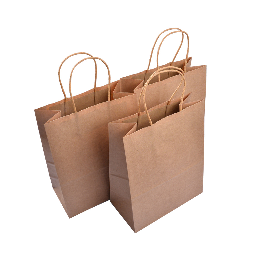 EcoFlavour Craft Paper Takeaway Bags – Large – 33x25x12cm – Pack of 50 – Strong brown bags with twisted handle.
